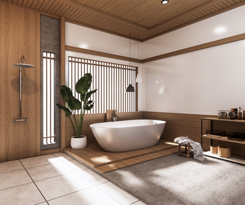 Adding natural elements such as bamboo, stone, wood and live plants will further create a spa-like ambiance. These elements also add visual interest and a create a calming connection to nature.